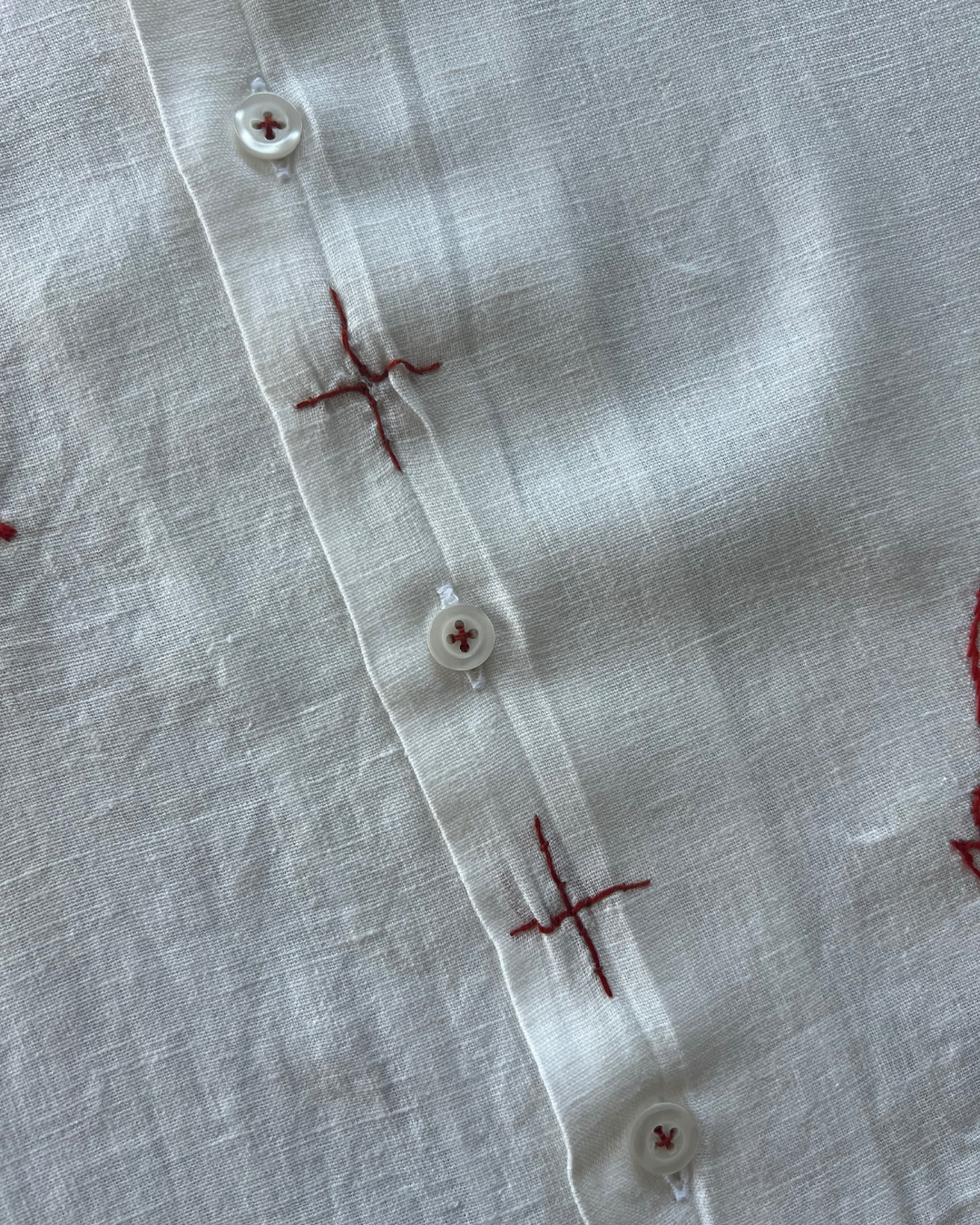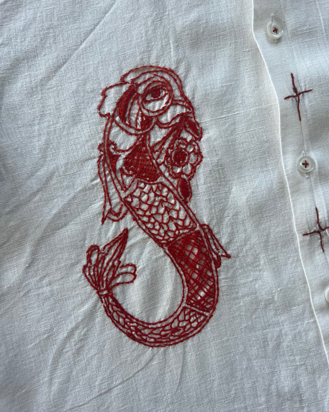 Our handmade creations, crafted from cotton and linen, are the result of meticulous effort. To ensure their longevity, please handle them gently. Wash in water not exceeding 30°C and do not tumble dry. Use a moderate heat setting (standard cotton setting) when ironing. It's safe to iron over the embroidered areas.